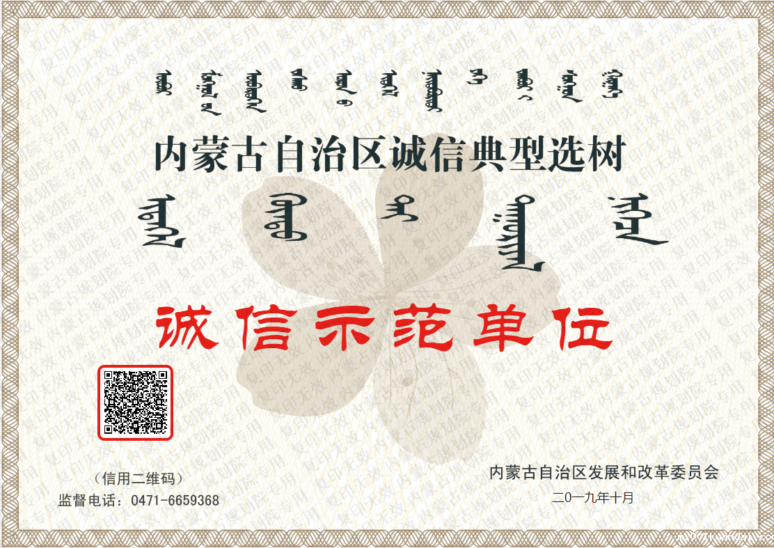 内蒙古自治区第二批诚信示范典型单位公示 我院榜上有名